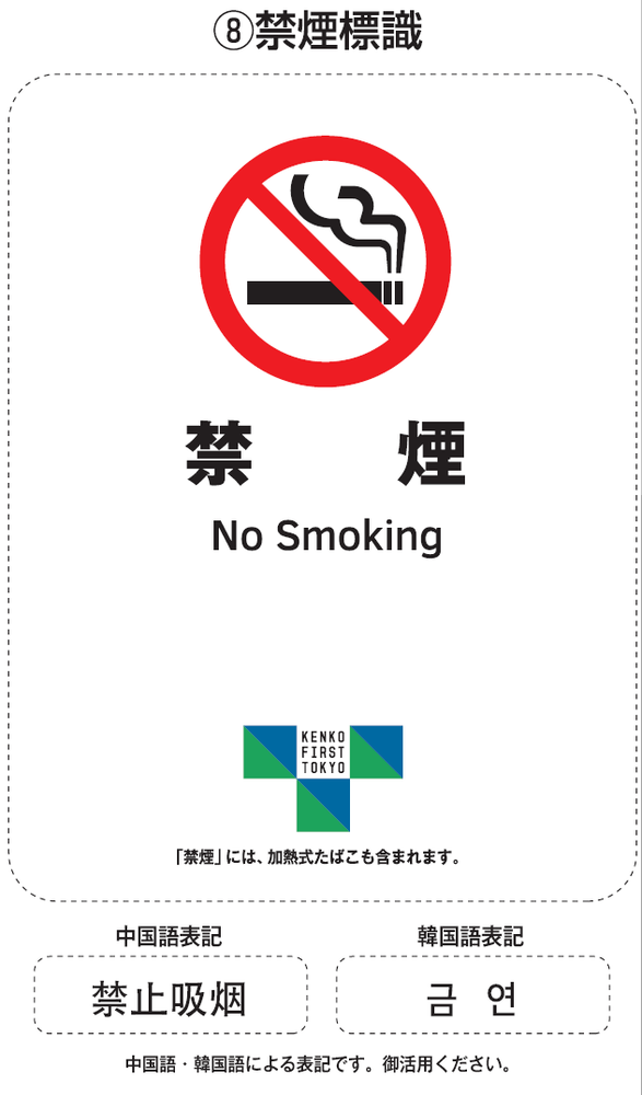 喫煙の場合は、「施設出入口等に掲示する標識デザインとシール式標識・説明用パンフレット」をご確認ください。